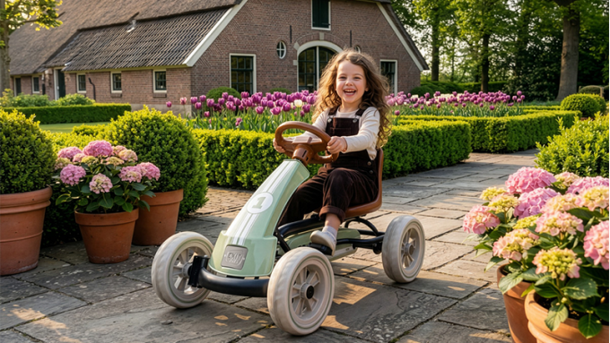 That makes it even more fun for children to head off in their own go-kart. The Foxy is not only a great first pedal go-kart, but also one children really grow attached to. Today it is a racing car, tomorrow a delivery vehicle and next week the regular transport for every adventure in the garden.